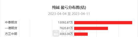 数据显示,一周内中泰期货、一德期货、方正中期在纯碱上盈利居前,三机构分别盈利13092.87万元,7620.81万元,3063.06万元。