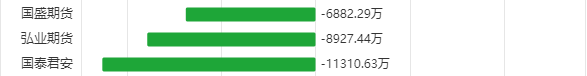 一周内国泰君安、弘业期货、国盛期货在纯碱上亏损居前,三机构分别亏损11310.63万元,8927.44万元,6882.29万元。