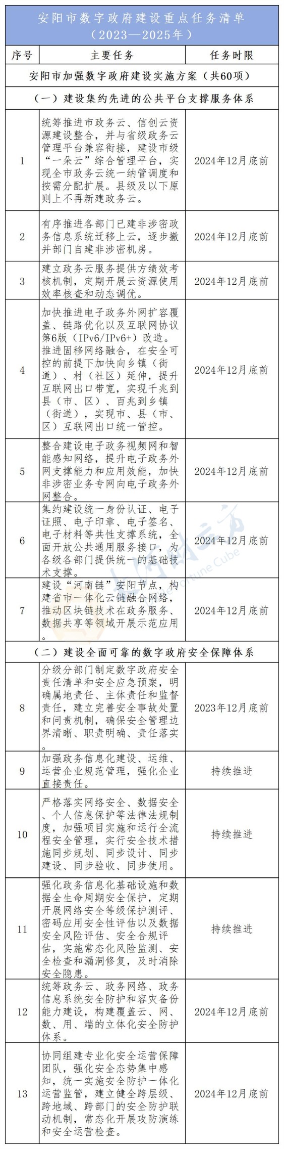 同时,方案还明确了安阳市数字政府建设重点任务清单,共60项。